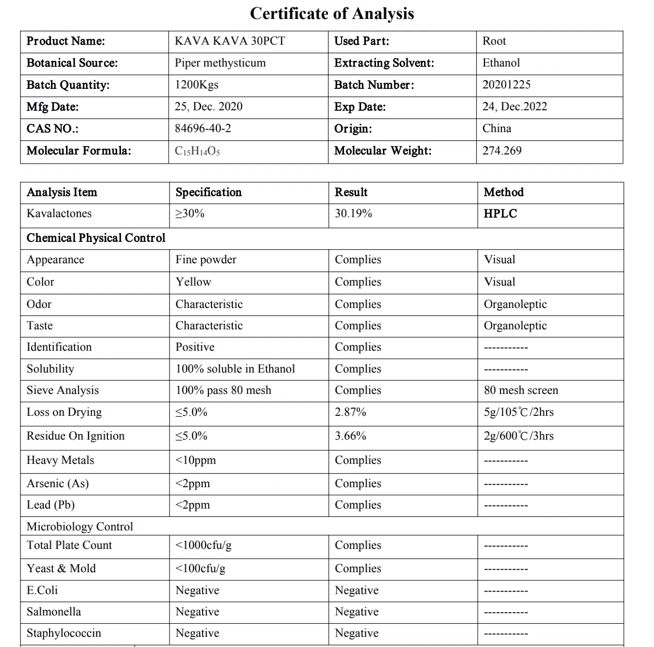 | Specification | Kavalactones 30%, 70%, 10:1 |