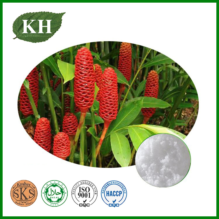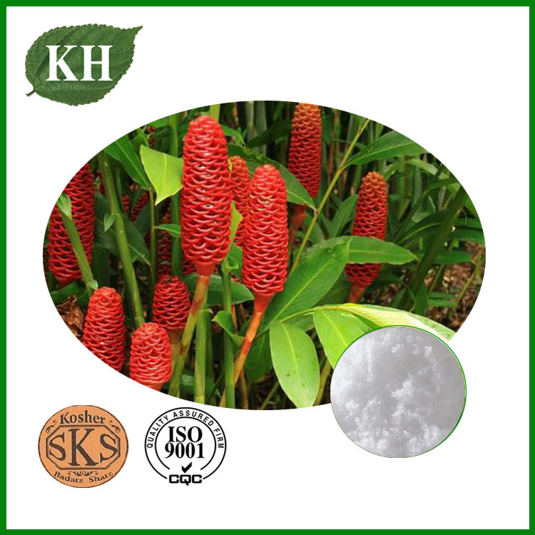 Zingiber Zerumbet Extract Botanical source: Zingiber zerumbet (L.) SmithSynonyms: Shampoo Ginger; Pinecone Ginger.Active Ingredient: Zerumbone 98% HPLCPart used: Rhizome.CAS#: 471-05-6.Molecular Formula: C15H22OMolecular Weight: 218.340Appearance: Colorless Crystal. Botany: Zingiber Zerumbet Extract......
